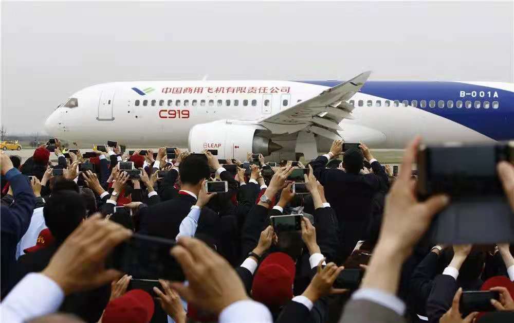 國(guó)產(chǎn)大型客機(jī)C919在上海浦東國(guó)際機(jī)場(chǎng)首飛成功(2017年5月5日攝)