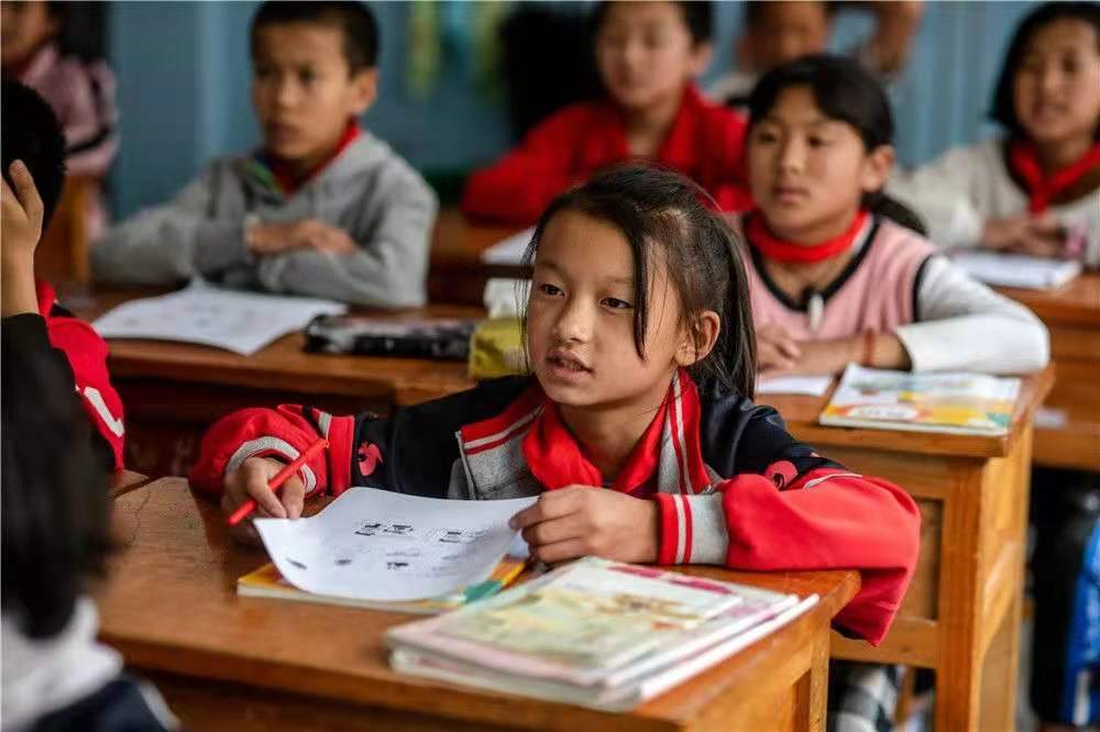 在云南貢山獨(dú)龍族怒族自治縣獨(dú)龍江鄉(xiāng)九年一貫制學(xué)校,獨(dú)龍族學(xué)生肖琴萍在教室里上課(2020年10月31日攝)