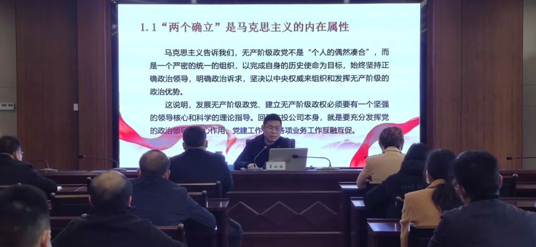 課上,肖小波生動(dòng)、詳實(shí)地闡述了黨的十九屆第六次全會(huì)中提出的“兩個(gè)確立”是馬克思主義的內(nèi)在屬性、是中國(guó)共產(chǎn)黨的優(yōu)良傳統(tǒng)、是新時(shí)代黨和國(guó)家事業(yè)發(fā)展、推進(jìn)中華民族偉大復(fù)興歷史進(jìn)程的現(xiàn)實(shí)需要三個(gè)深遠(yuǎn)意義,同時(shí)結(jié)合個(gè)人感悟就如何堅(jiān)定“兩個(gè)確立”、落實(shí)“兩個(gè)確立”,提出必須提高政治站位、必須加強(qiáng)政治建設(shè)、必須扛起政治擔(dān)當(dāng)?shù)娜齻(gè)方法,要求全體黨員要方法理論結(jié)合實(shí)際,切實(shí)把習(xí)近平新時(shí)代中國(guó)特色社會(huì)主義思想融入到交投公司事業(yè)發(fā)展全過(guò)程中來(lái),最大限度地快速推進(jìn)項(xiàng)目建設(shè)、投資融資、內(nèi)控內(nèi)管等中心工作,以鐵的“內(nèi)核”為交投公司高質(zhì)量發(fā)展增光添彩。