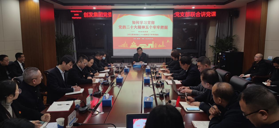 為全面貫徹落實(shí)黨的二十大精神,充分發(fā)揮黨組織領(lǐng)導(dǎo)核心作用,全面落實(shí)黨建推動(dòng)公司高質(zhì)量發(fā)展,2月16日,市創(chuàng)發(fā)集團(tuán)黨委書(shū)記、董事長(zhǎng)梁養(yǎng)賢以“如何學(xué)習(xí)貫徹黨的二十大精神”為主題,為交投黨支部全體黨員講授了一堂精彩的黨課。